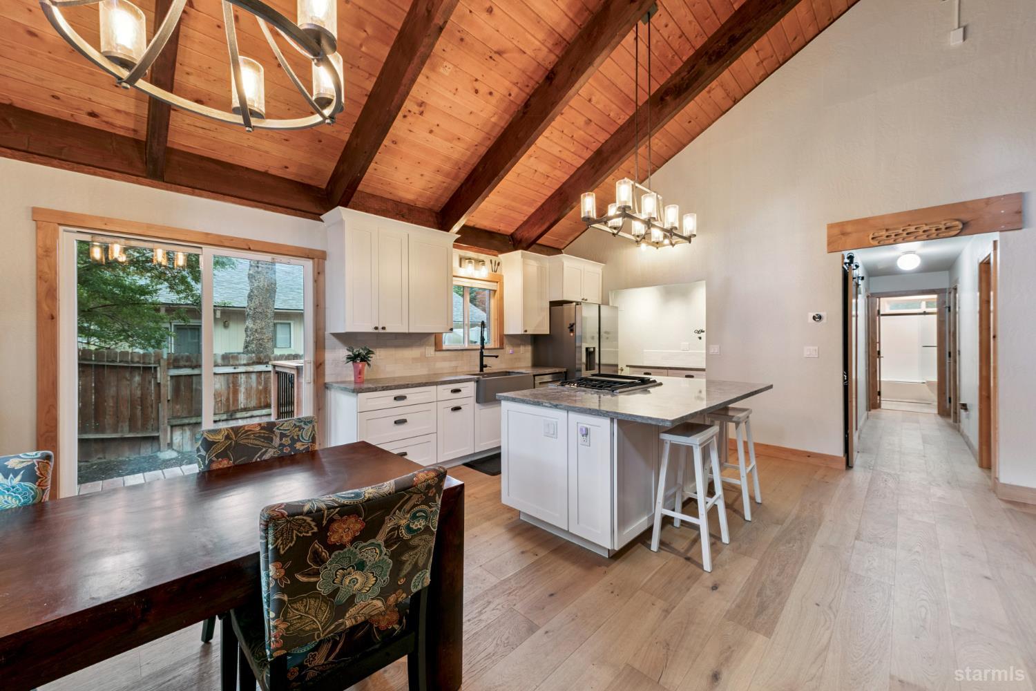 This charming remodeled three-bedroom, two-bathroom home provides a cozy and comfortable living experience. The spacious living room features a welcoming fireplace, perfect for relaxing or entertaining. The well-equipped kitchen boasts ample storage and counter space, making it ideal for family gatherings. The fenced backyard with a large deck offers plenty of room for outdoor activities, gardening, and/or family time. 2 sheds for storage and ample parking out front providing room for the toys. Located in a desirable neighborhood and close to all the activites that Tahoe has to offer. This home combines convenience and comfort, ready to become your personal retreat. Call today for your showing, you won't be disappointed! Property is not being priced on Sq. Ft.OPEN HOUSE SATURDAY OCTOBER 4TH FROM 10AM - 12pm