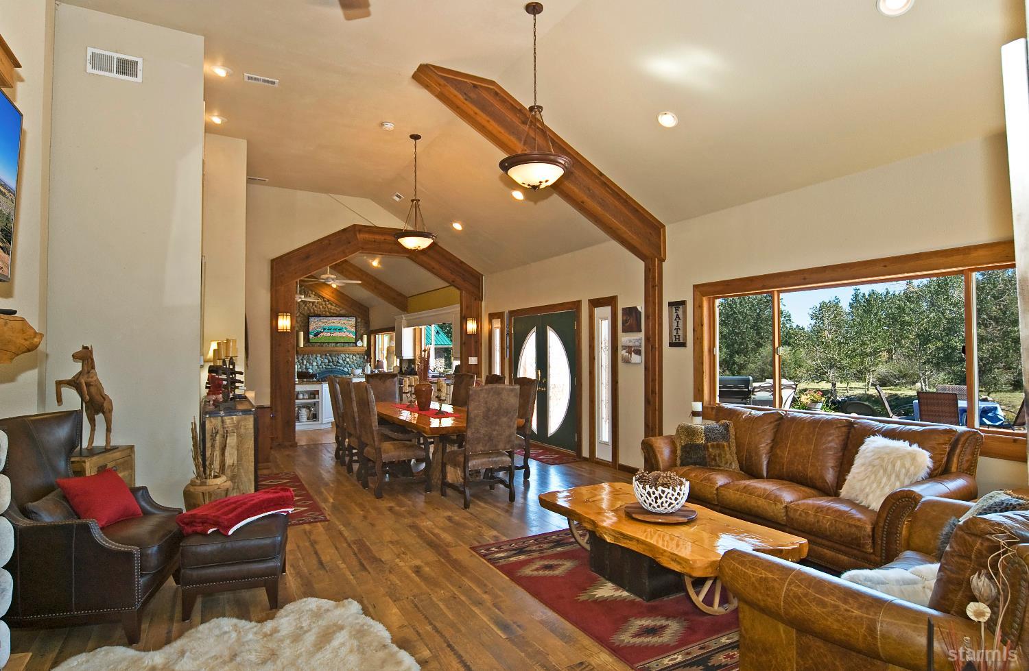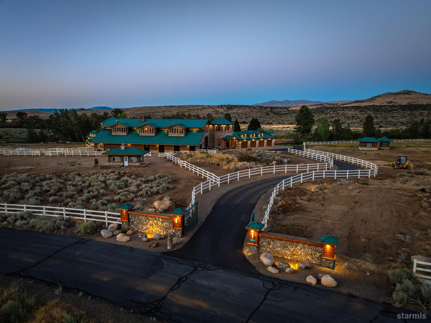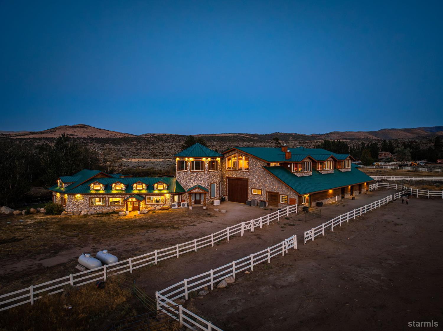 Exceptional Riverfront Ranch Estate in Markleeville, California. This remarkable 76 acre equestrian and lifestyle compound offers a private stretch of the scenic Carson River and is one of the rare riverfront ranches with its own 120-foot private bridge. Located just south of Nevada's Carson Valley, the property is only an hour from Reno-Tahoe International Airport, 30 minutes from Lake Tahoe and world-class ski resorts, and approximately three hours from San Francisco. The finely built main residence features 7 bedrooms and 5 bathrooms, with a suite of HVAC systems designed for maximum comfort and efficiency. Highlights include two full kitchens, a 12-seat movie theatre, and an elevator serving both floors, while expansive windows and a 4,300 sq.ft. deck overlook manicured lawns and the river. Additional improvements include a 1,900 sq.ft. guest house, a 1,600 sq.ft. garage and workshop with 5-car capacity and 7,000 lb. auto lift, and dual electric entry gates with keypad access, with many quality furnishings available in the sale. For equestrian use, the ranch offers a 4,200 sq.ft. indoor arena with wash bay, 16-ft doors, four stalls and tack room, a 100' x 200' outdoor arena, five fenced pastures and four horse shelters. The grounds include 34,000 sq.ft. of irrigated lawn with a dedicated pump house, and an agricultural well producing approximately 100 gpm. In total there is more than 18,000 sq.ft. under roof, with every element reflecting the artisanship and pride of ownership invested into the property. Offered at $7,900,000, this legacy estate is incomparable in its exclusivity, setting, and craftsmanship.